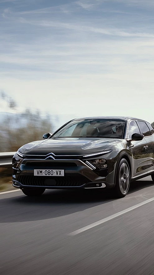 Mit seiner langgezogenen Motorhaube, seinem geräumigen Kofferraum und den großen Rädern verbindet der Citroën C5 X auf einzigartige Weise die Eleganz einer Limousine mit der Dynamik eines Kombis.